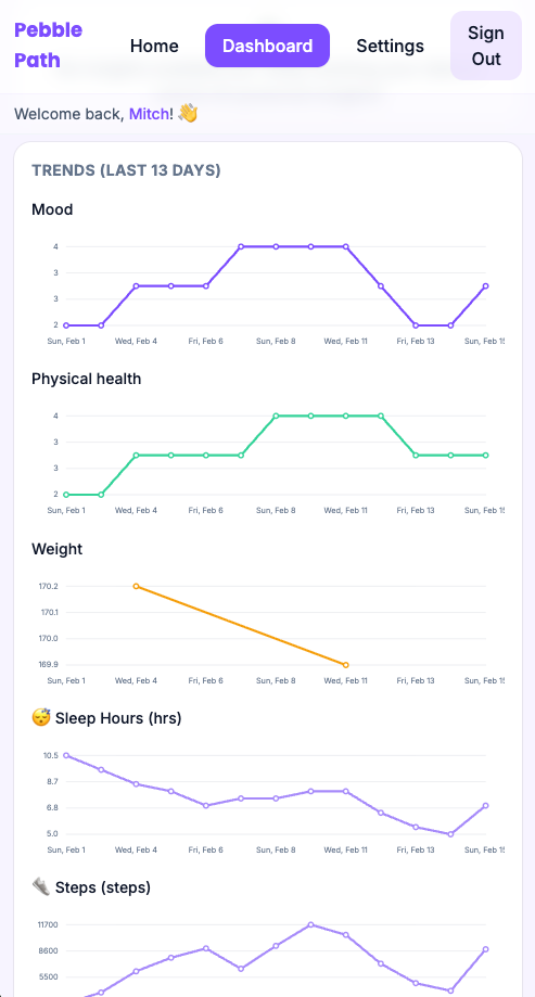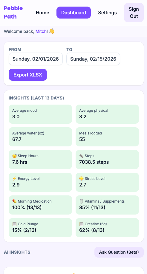 Dashboard surfaces patterns across days and weeks — no spreadsheet required.