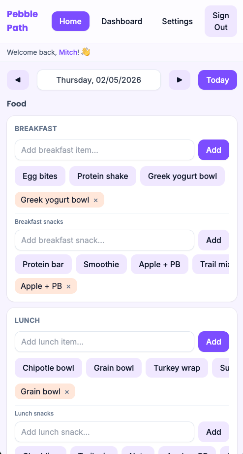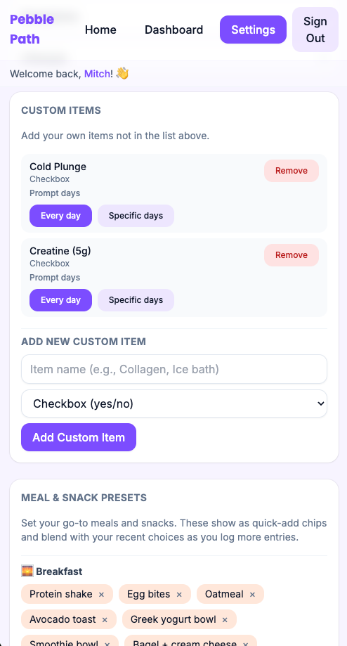 Save custom items and meal presets so you're not re-entering the same things every day.